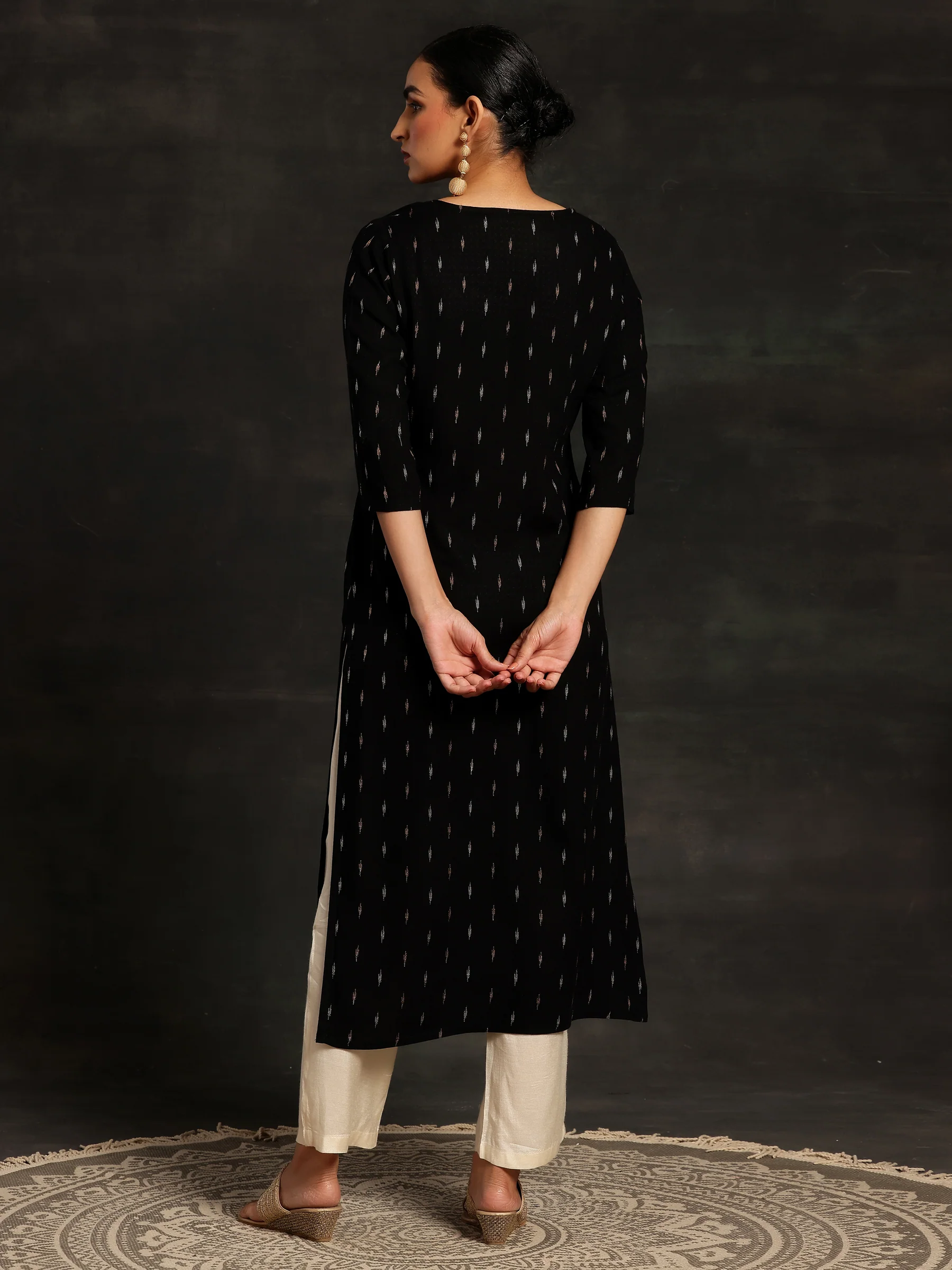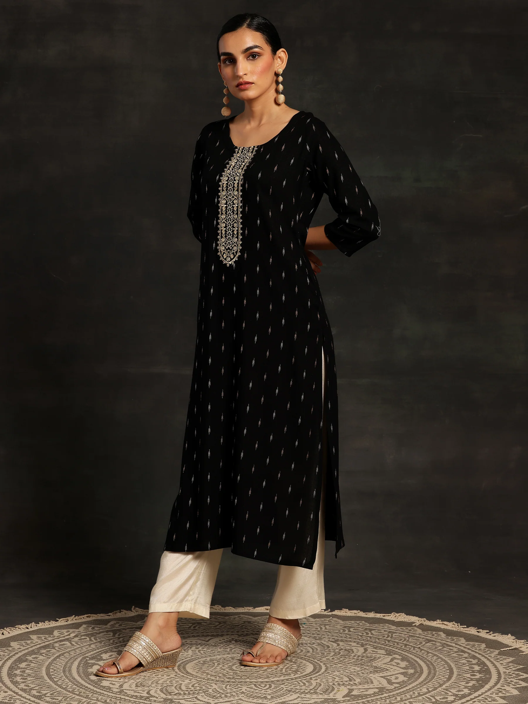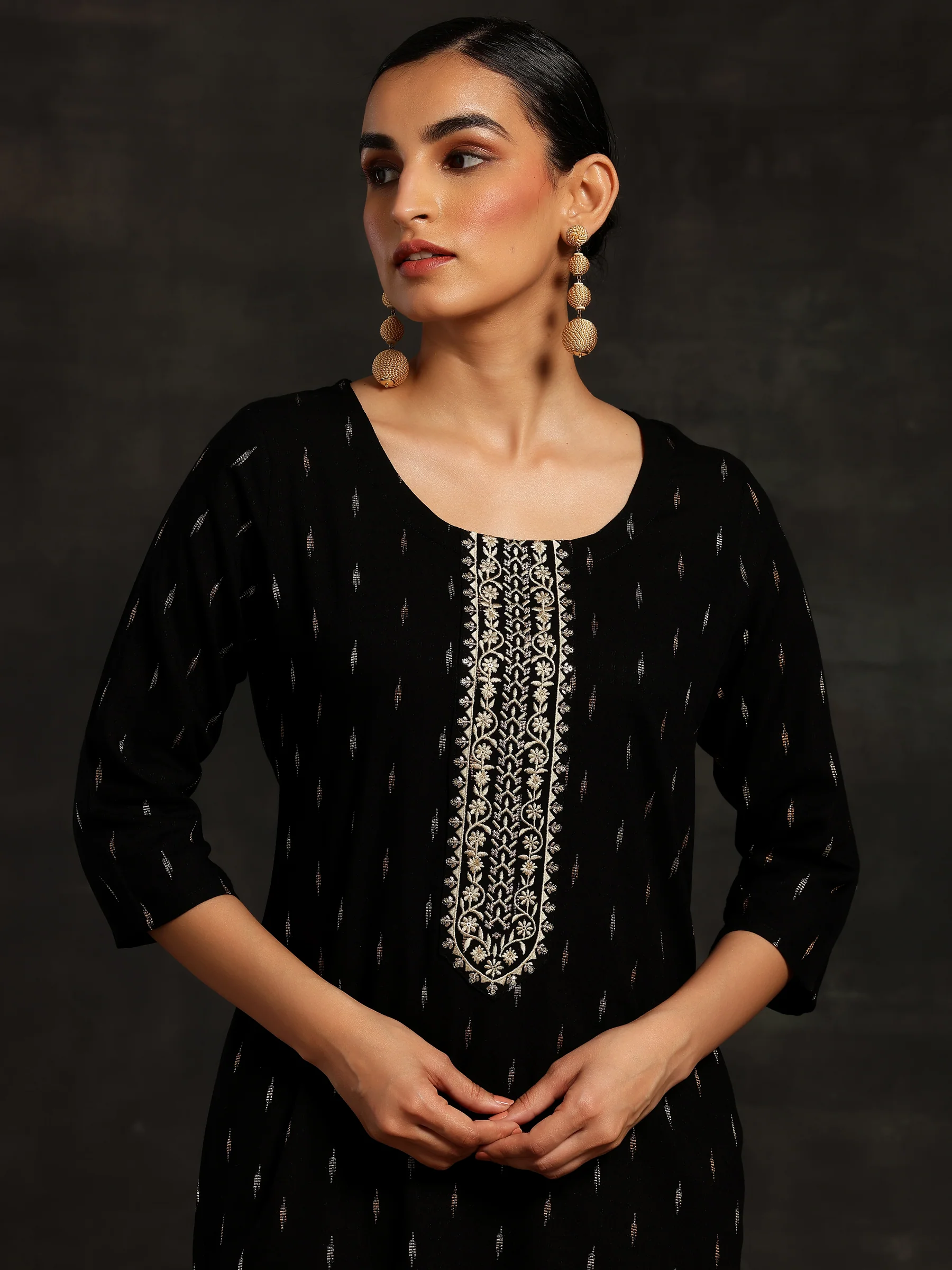 Black Yoke Design Cotton Straight Kurta