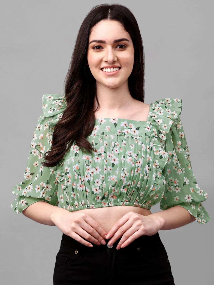 Crop Tops For Women Western Wear Green