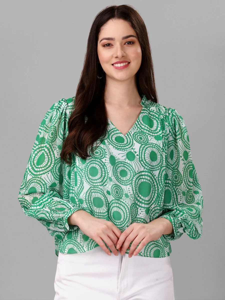TOPS FOR WOMEN WESTERN WEAR ABSTRACT GREEN COLOUR