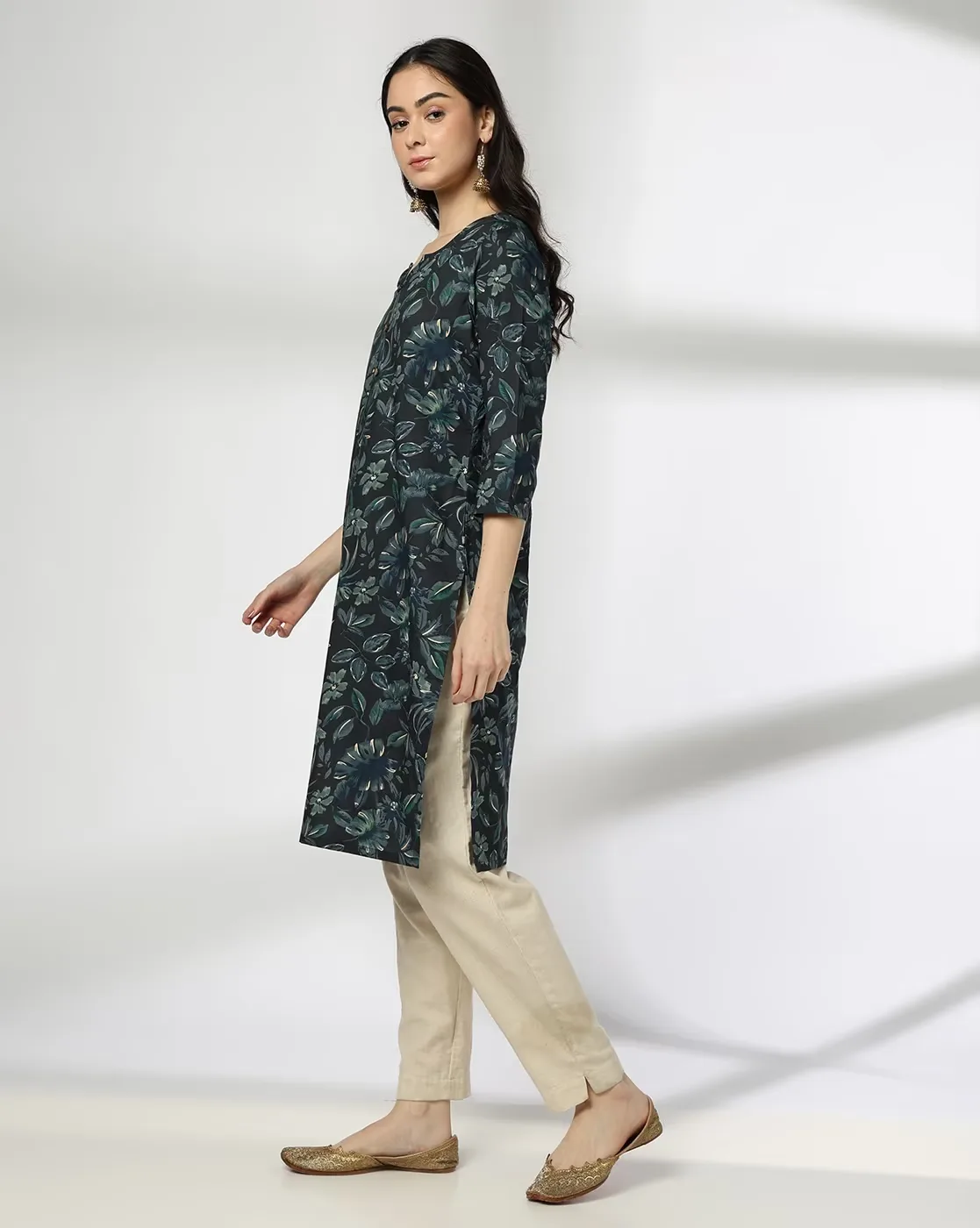 Women Floral Print Cotton Straight Kurta