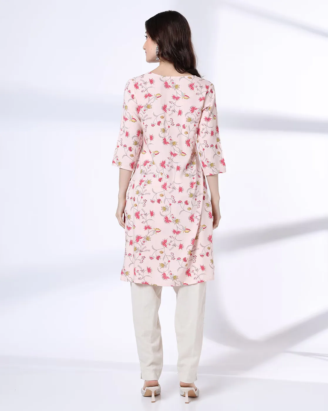 Women Lotus Floral Jaal Print Straight Kurta